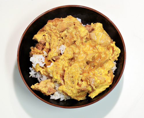 Oyakodon, vagyis ahogy egy tanárom nagyon művészien fordította, "anya és lánya a rizsen". Az "oya" a szülő, a "ko" a gyerek, a "don" pedig a "donburi" rövidítése, ami csupán annyit jelent, hogy valami, rizskupacon tálalva (általában egyébként bármi, hagymával és tojással). Tehát az anya-lánya rizs: tojásos csirkehús rizzsel. Egy egyszerű japán étel, amihez szinte mindig van otthon minden. És így belegondolva, eléggé morbid neve van. De nagyon finom.
